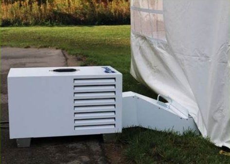 Make the party season last longer with this powerful forced air heater that provides the heat you need. It runs on a standard 20-lb. LP gas BBQ tank and has an electric fan to circulate and distribute heat within the tent. Each heater will heat up to 1,000 square feet (20’ x 50’).